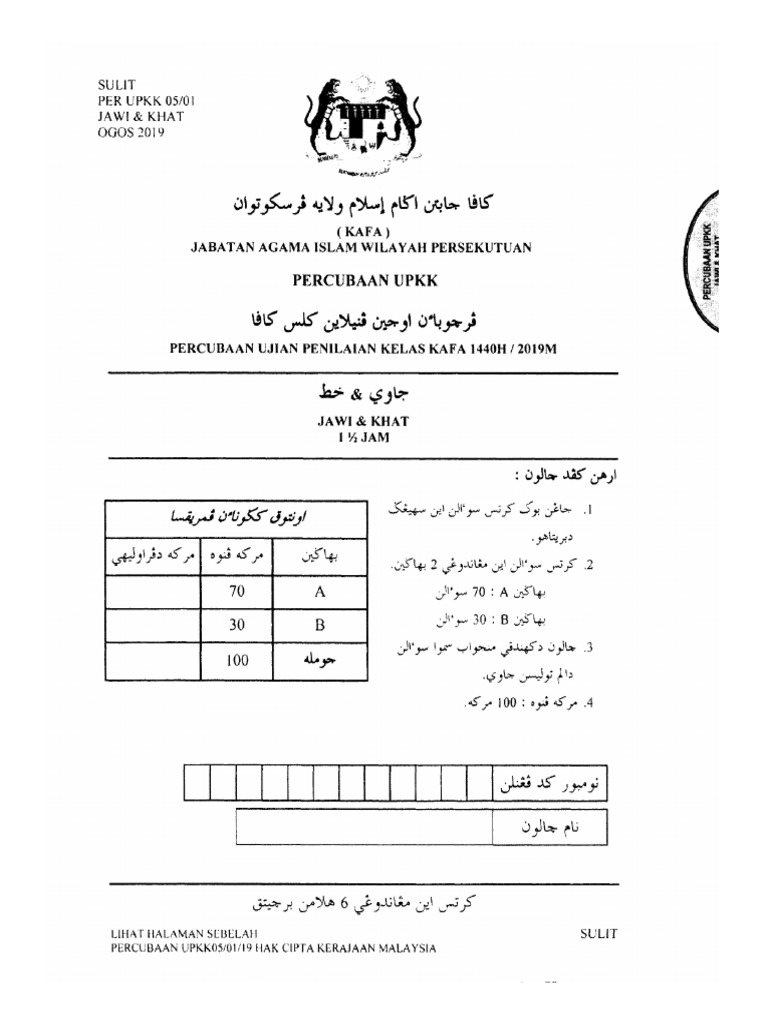 Upkk Percubaan Jawi Khat 2019 Pdf